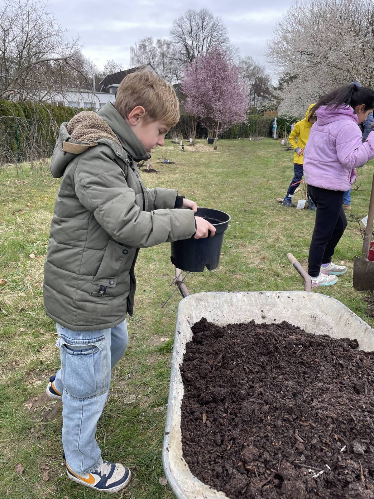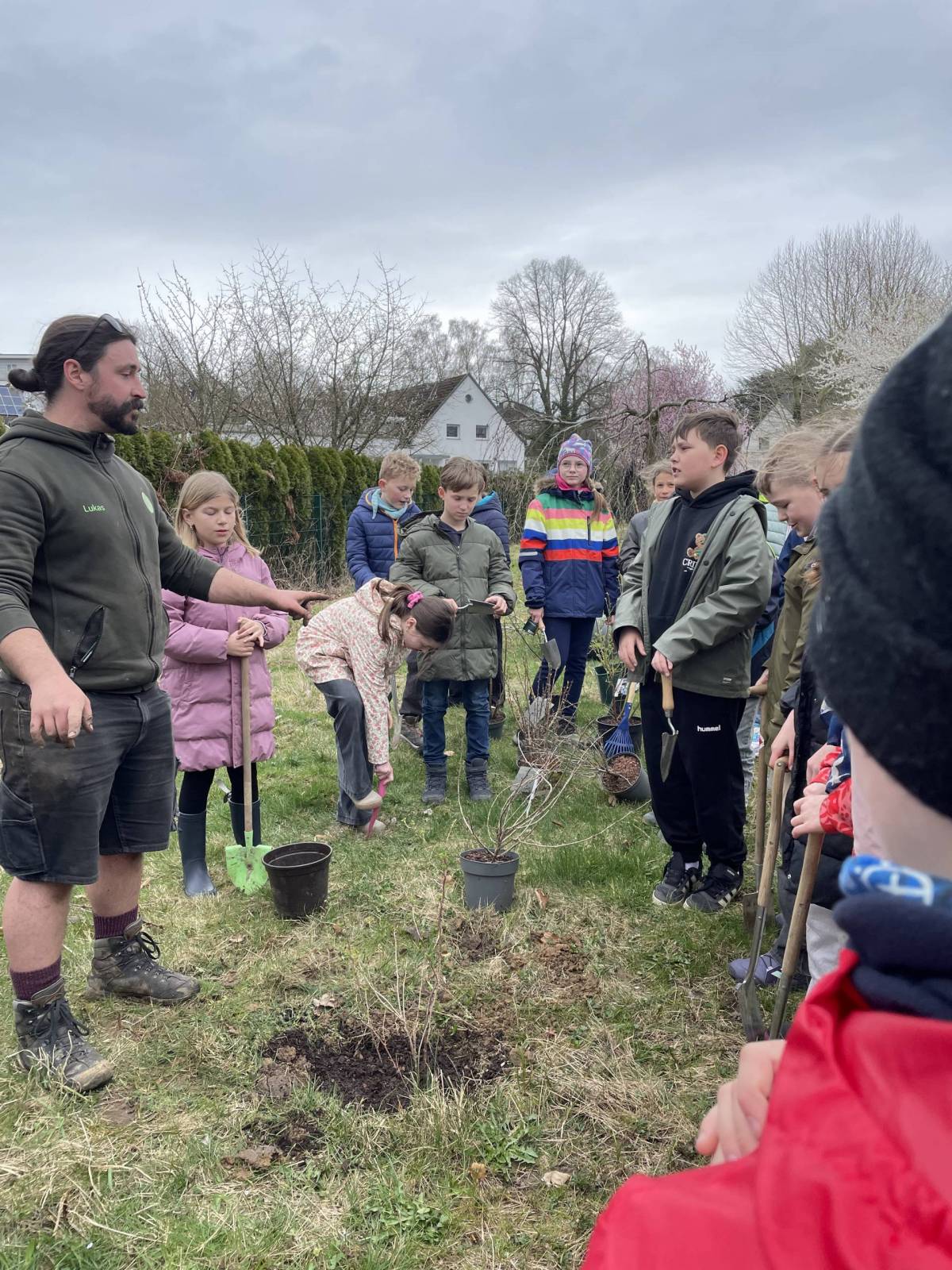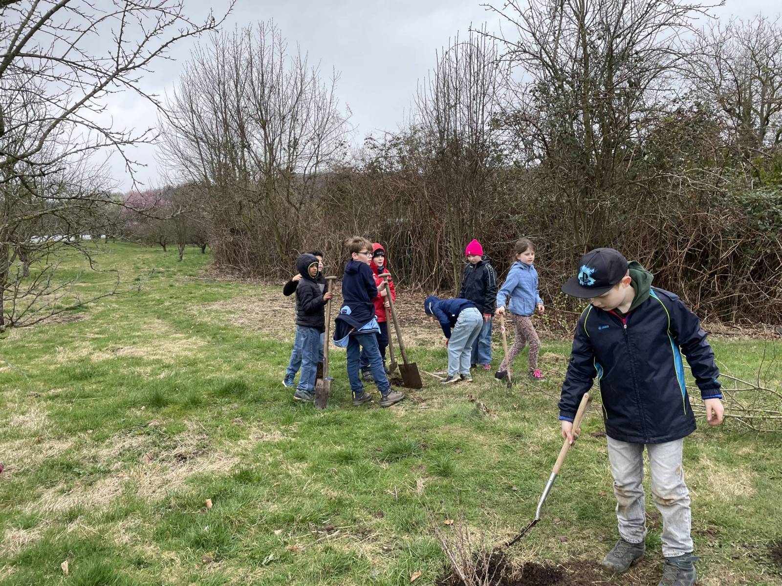 Die Klasse 4b durfte heute an einer Pflanzaktion auf der Streuobstwiese am Anleger am Baldeneysee teilnehmen. Bei dem Projekt wurden viele unterschiedliche Beerensträucher für einen Naschort gepflanzt. Alle waren mit viel Einsatz und Freude dabei. Zum krönenden Abschluss durften wir sogar einen eigenen kleinen Apfelbaum für unsere Klasse pflanzen. Durch den einsetzenden Regen waren am Ende zwar alle reichlich nass, aber trotzdem sehr zufrieden. Vielen Dank an Lukas von der Organisation „Waldwärts!“ für die Einladung zu dieser tollen Aktion !