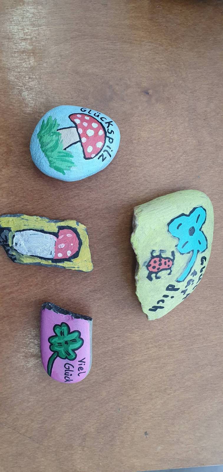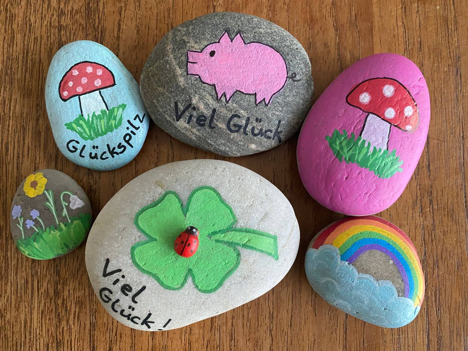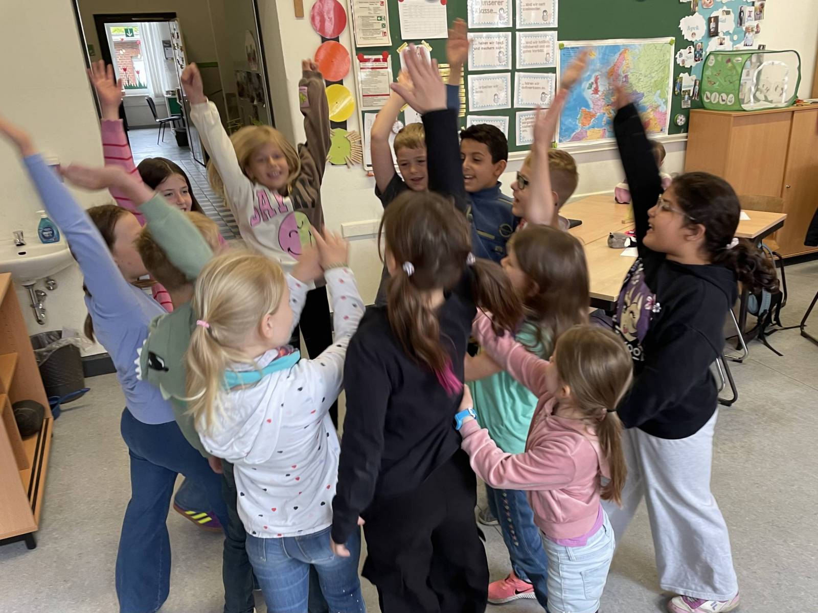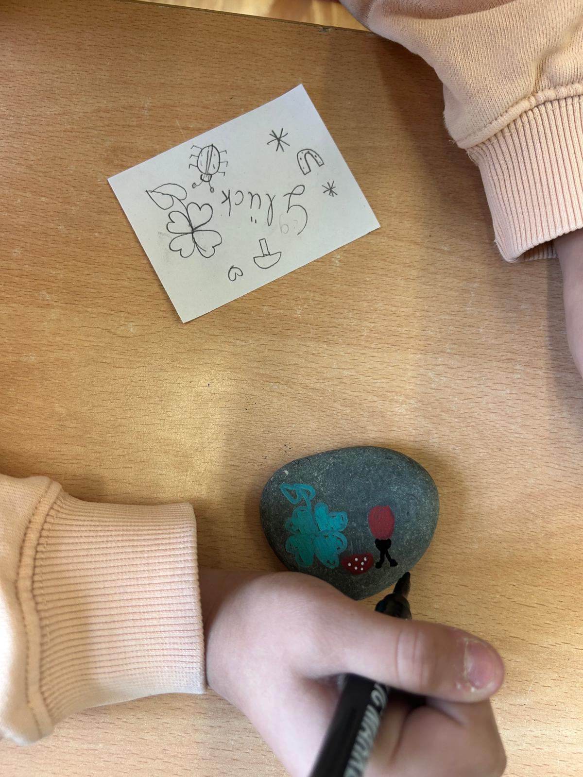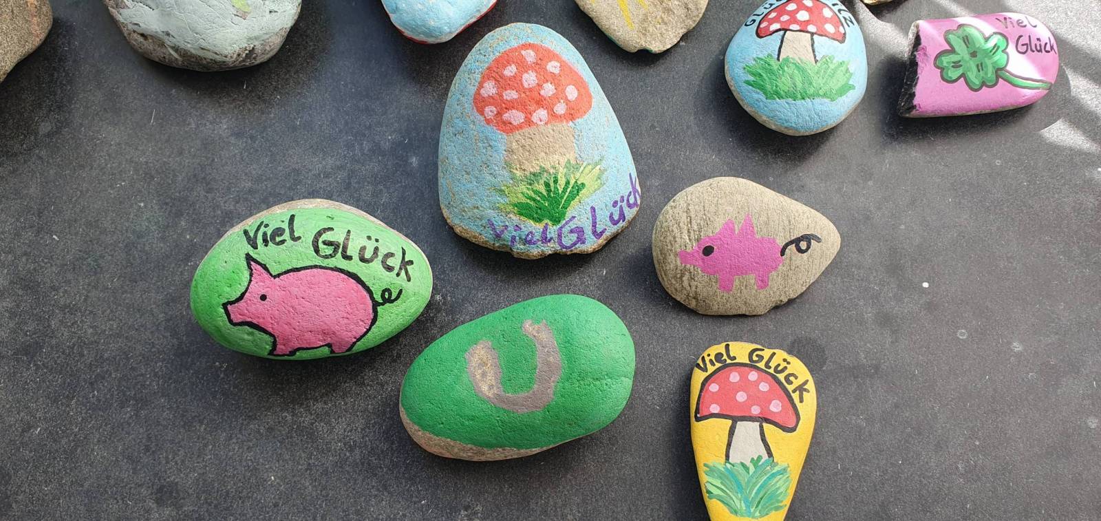Vom 19.05. bis 23.05. 2025 fand an der Georgschule eine Projektwoche zum Thema Glück statt. In den Klassen fanden viele ganz unterschiedliche Aktionen statt, z.B. wurden Glückssteine bemalt, verschenkt und in Heisingen ausgelegt, Bilderbücher vorgelesen, Stop-Motion-Glücksfilme gedreht, getanzt, gebastelt, Spielplätze besucht, Glücksbingo gespielt, es gab „warme Duschen“, nette Worte, Picknicks, Eis, keine Hausaufgaben und ganz, ganz viel GLÜCK.