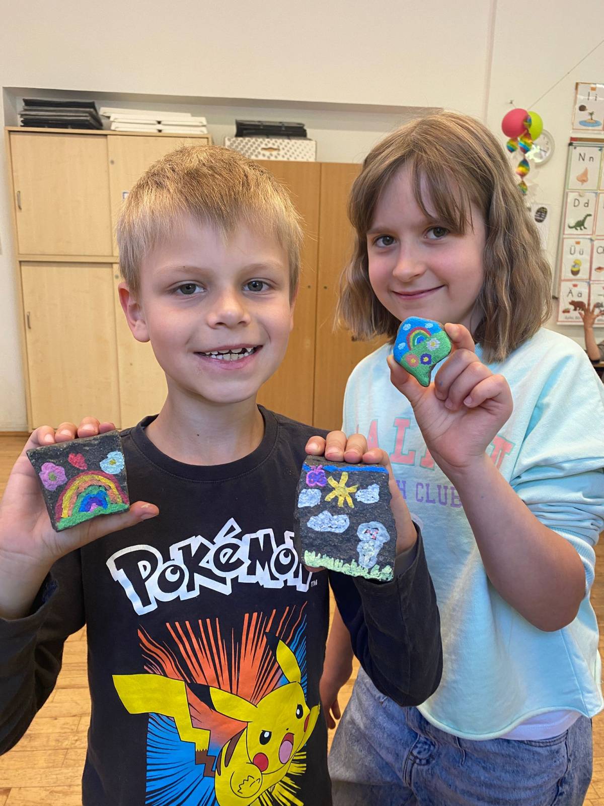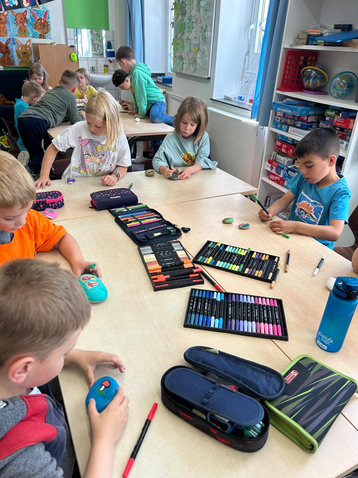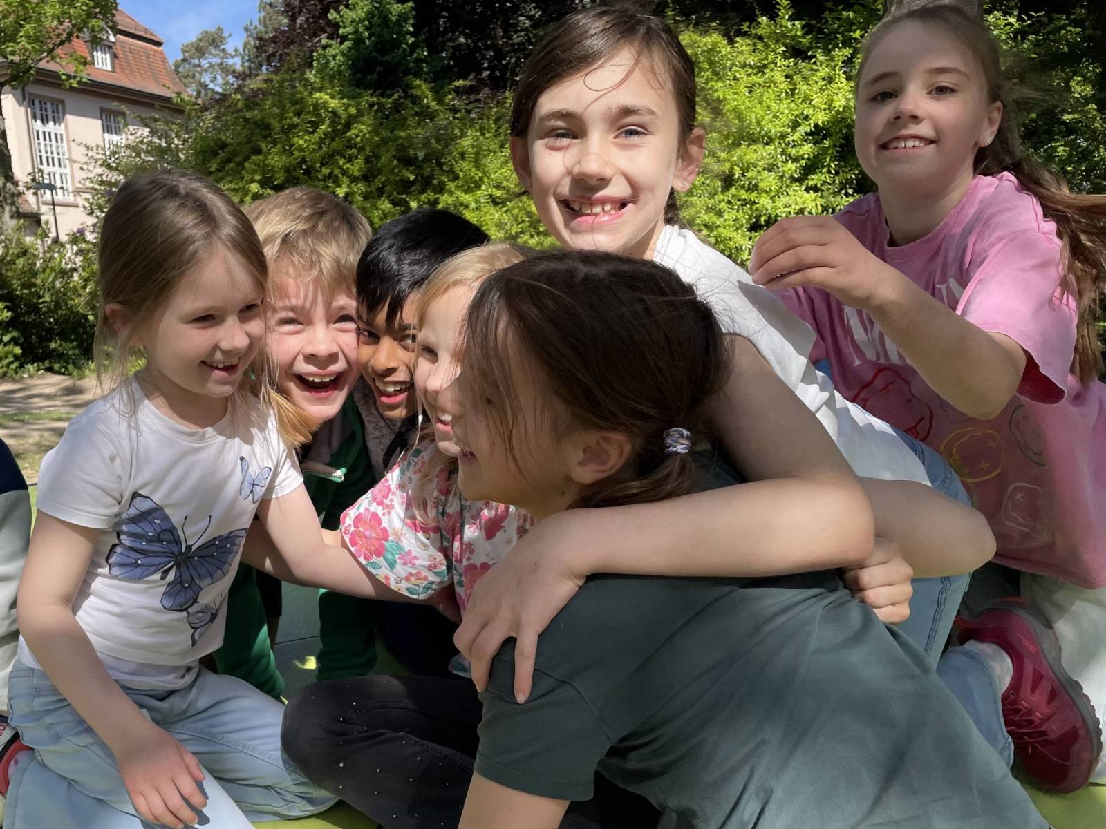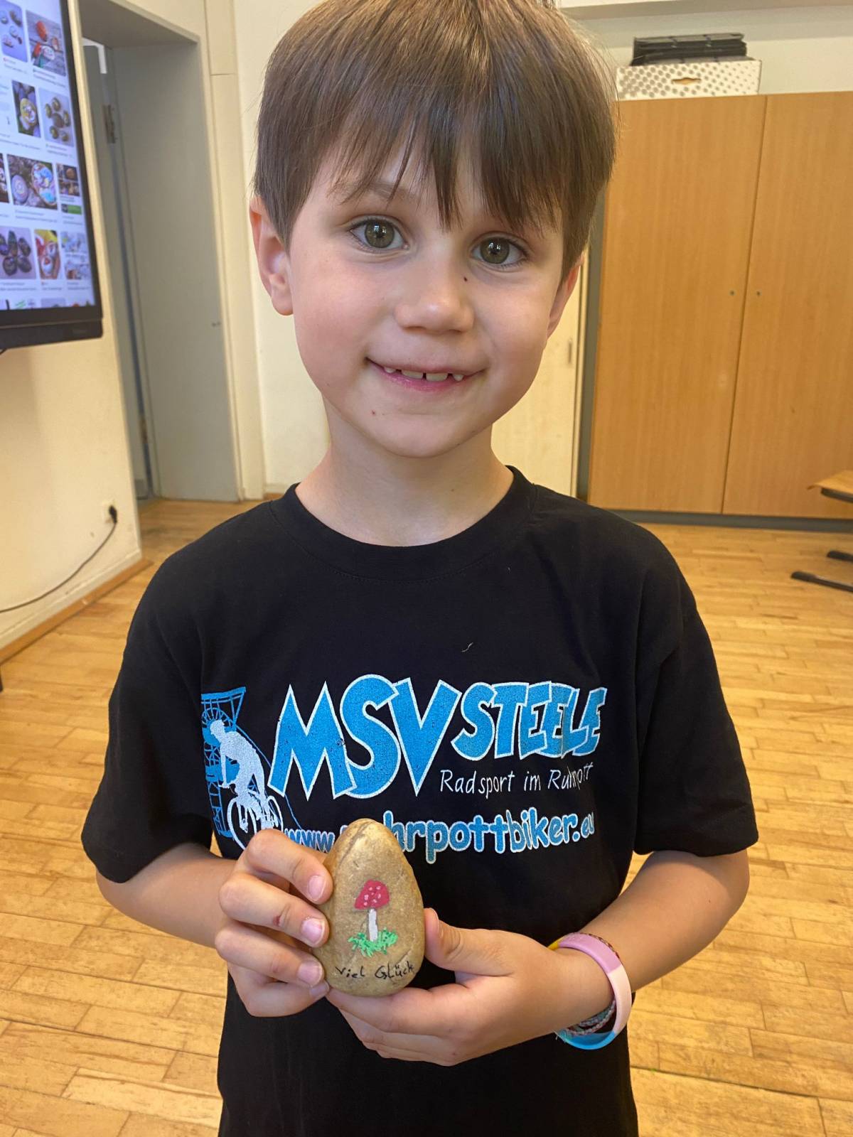 Vom 19.05. bis 23.05. 2025 fand an der Georgschule eine Projektwoche zum Thema Glück statt. In den Klassen fanden viele ganz unterschiedliche Aktionen statt, z.B. wurden Glückssteine bemalt, verschenkt und in Heisingen ausgelegt, Bilderbücher vorgelesen, Stop-Motion-Glücksfilme gedreht, getanzt, gebastelt, Spielplätze besucht, Glücksbingo gespielt, es gab „warme Duschen“, nette Worte, Picknicks, Eis, keine Hausaufgaben und ganz, ganz viel GLÜCK.