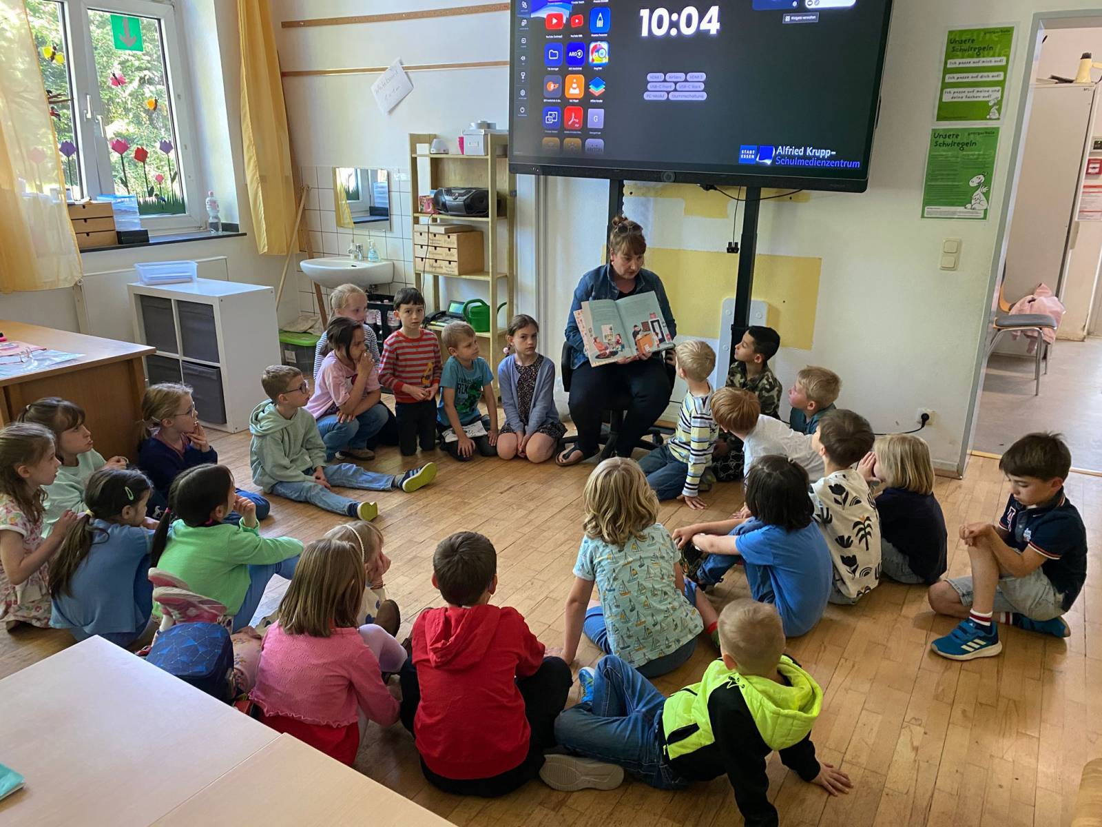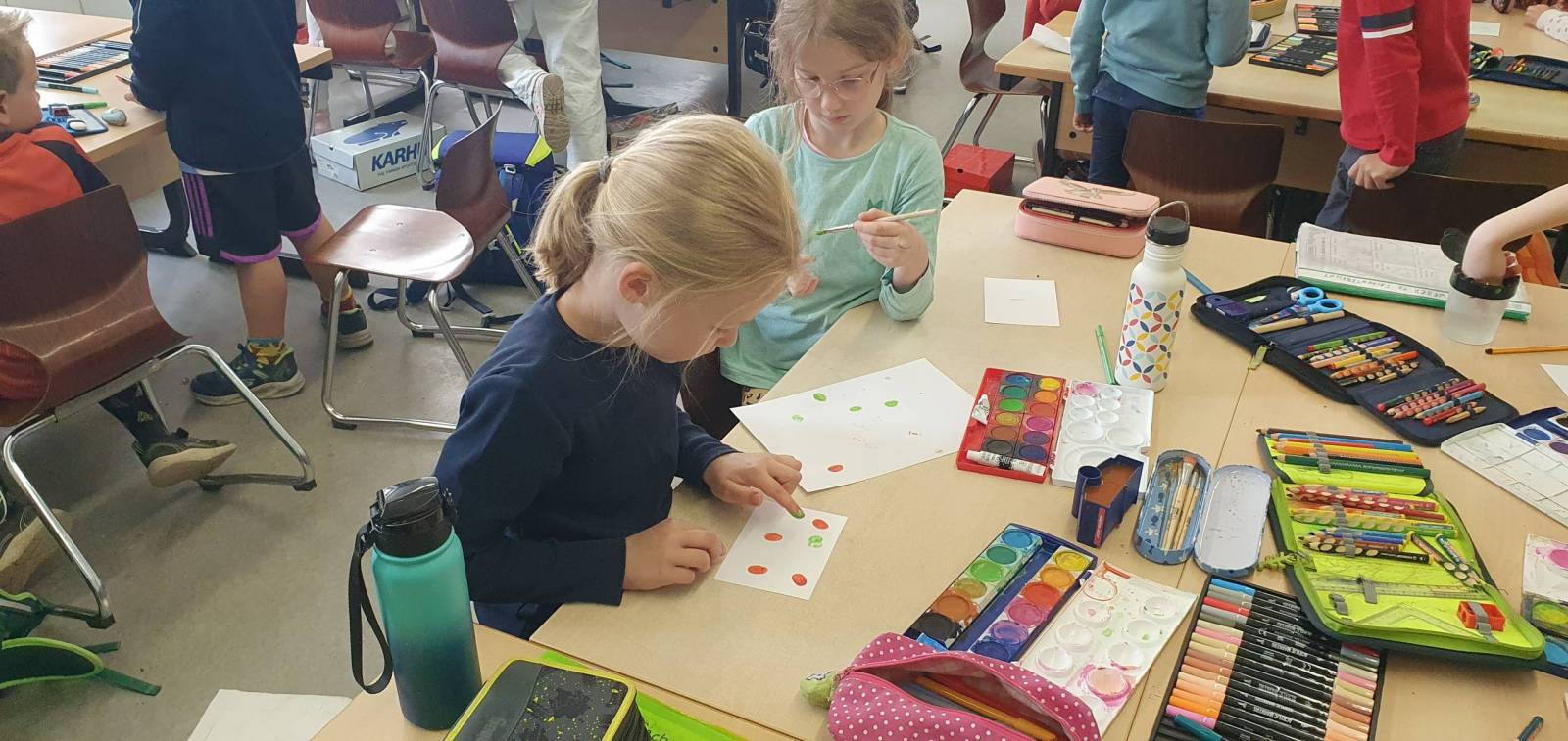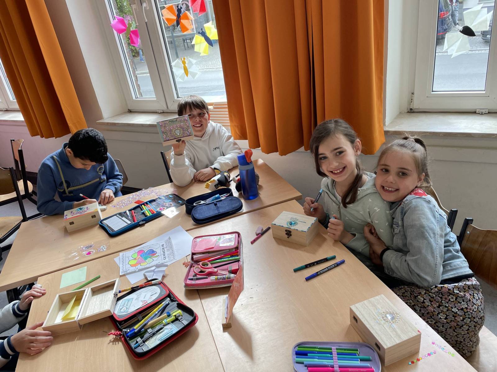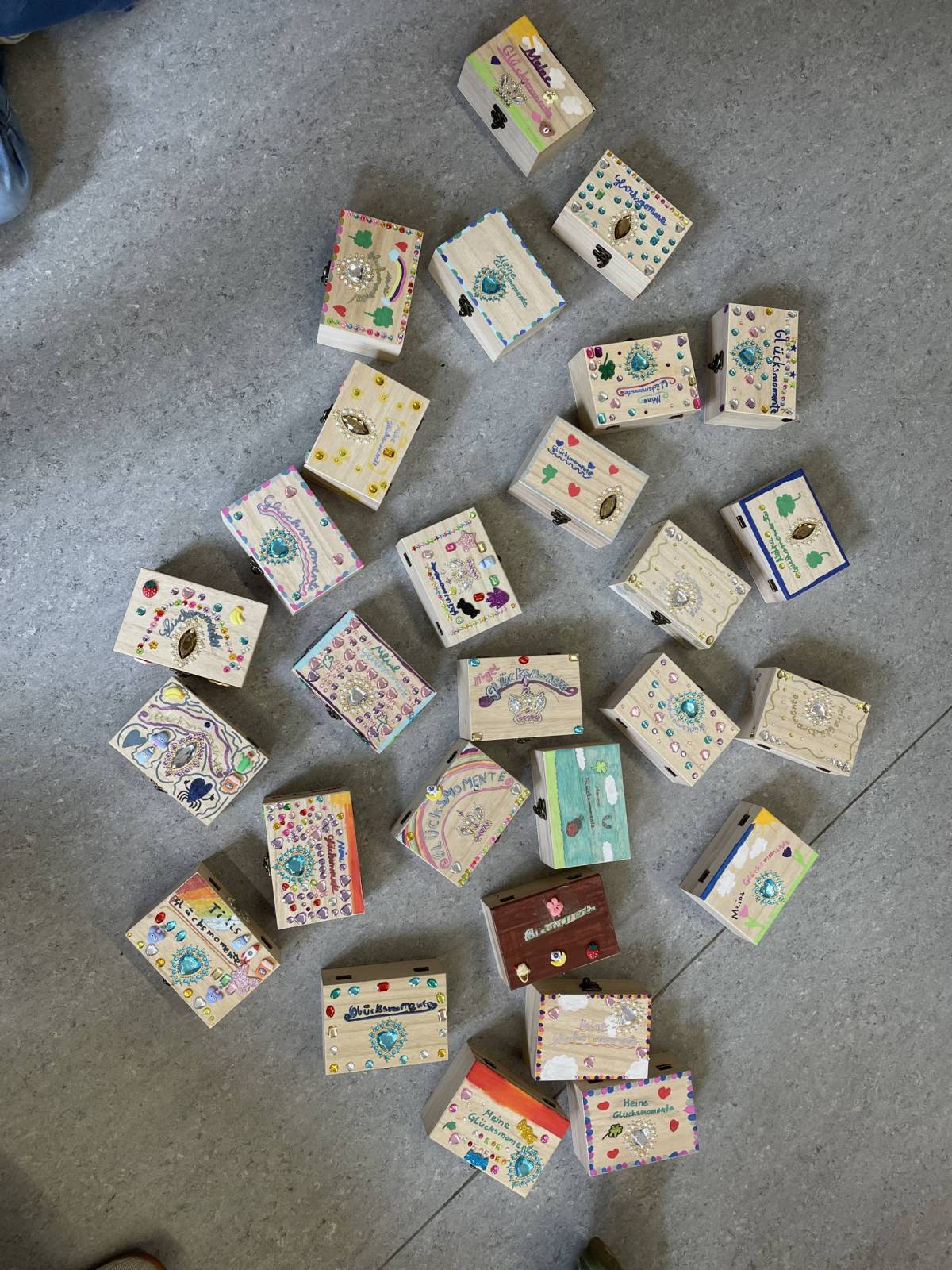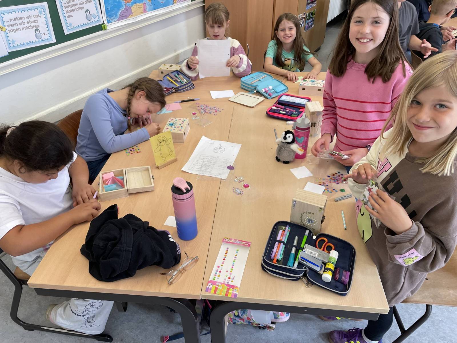 Vom 19.05. bis 23.05. 2025 fand an der Georgschule eine Projektwoche zum Thema Glück statt. In den Klassen fanden viele ganz unterschiedliche Aktionen statt, z.B. wurden Glückssteine bemalt, verschenkt und in Heisingen ausgelegt, Bilderbücher vorgelesen, Stop-Motion-Glücksfilme gedreht, getanzt, gebastelt, Spielplätze besucht, Glücksbingo gespielt, es gab „warme Duschen“, nette Worte, Picknicks, Eis, keine Hausaufgaben und ganz, ganz viel GLÜCK.