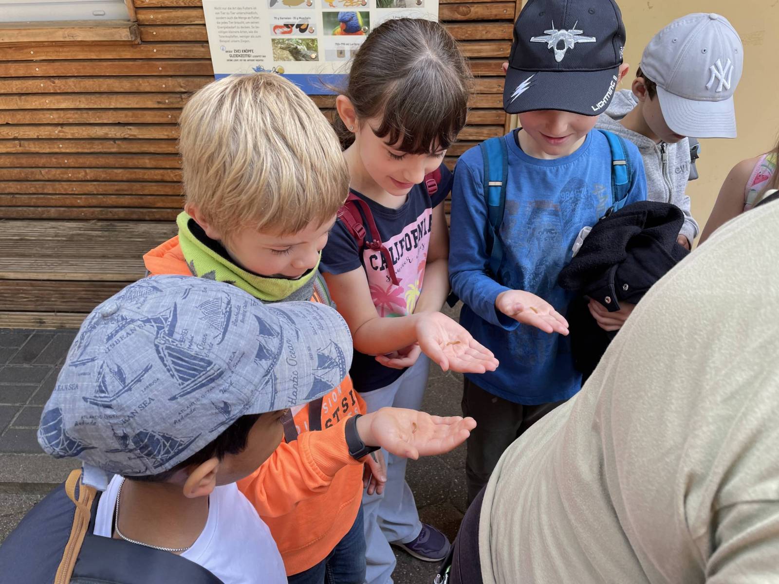 Bei sonnigem Wetter ging es für die Klassen 2a und 2b in den Tierpark nach Bochum. Bei der Führung „Leckermäuler“ erfuhren die Kinder viel über unterschiedliche Tiere sowie deren Nahrung. Wer sich traute, durfte auch einen Fisch anfassen und Mehlwürmer auf die Hand nehmen. Flaps, der Klassenpinguin der 2b, war natürlich mit dabei und besuchte  seine Pinguinfreunde. Zum Schluss ging es für alle noch auf den Spielplatz. Es war ein schöner Tag.
